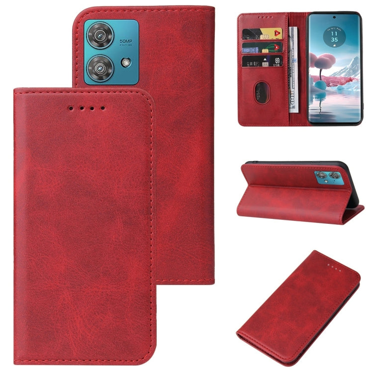 Funda de Cuero para Motorola Edge 40 Neo con Cierre Magnético (Rojo)