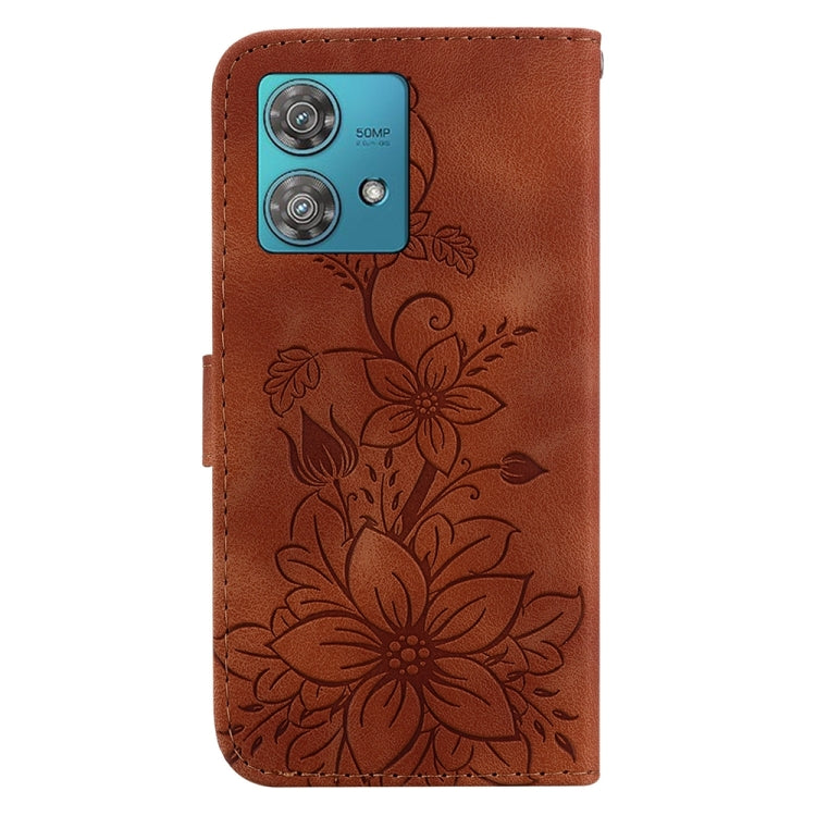 Funda de Cuero en Relieve para Motorola Edge 40 Neo Lily (Marrón)