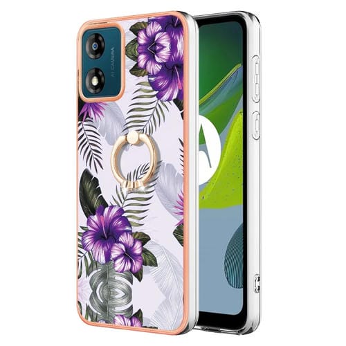 Funda TPU con Anillo para Motorola Moto E13 Galvanoplastia IMD (Flor Púrpura)