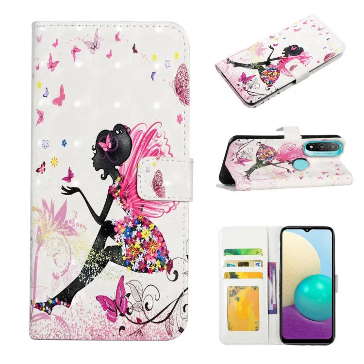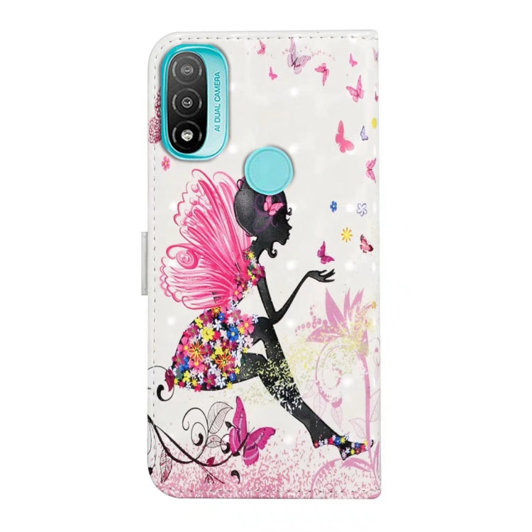 Funda para Motorola Moto E20 E30 E40 de Cuero con Dibujo 3D en Relieve al Óleo (Hada de Flores)
