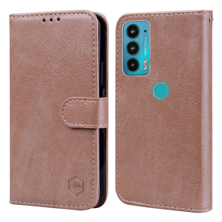 Funda para Motorola Moto E20 E30 E40 PU + TPU Textura Cuero Aceitoso (Champán)