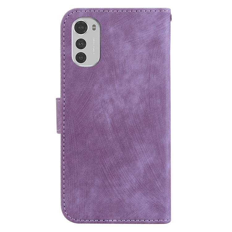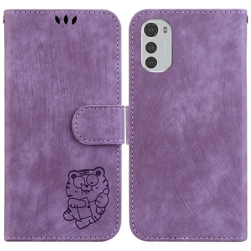 Funda de Cuero para Motorola Moto E32 Little Tiger en Relieve (Púrpura)
