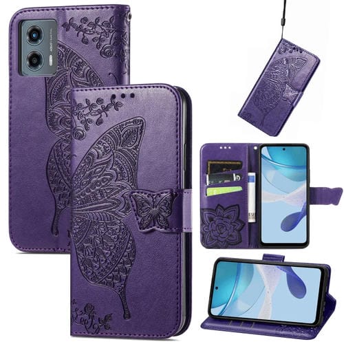 Funda de Cuero en Relieve Butterfly Love Flower para Motorola Moto G 5G 2023 (Púrpura Oscuro)
