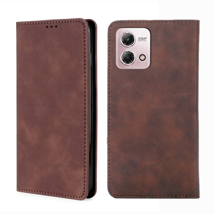 Funda de Cuero Magnética para Motorola Moto G Stylus 2023 4G Skin Feel (Marrón Oscuro)