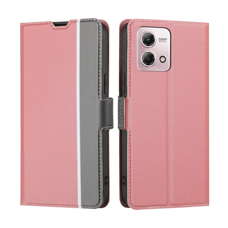 Funda de Cuero para Motorola Moto G Stylus 4G (2023) con Botón Lateral y Textura de Sarga (Rosa)