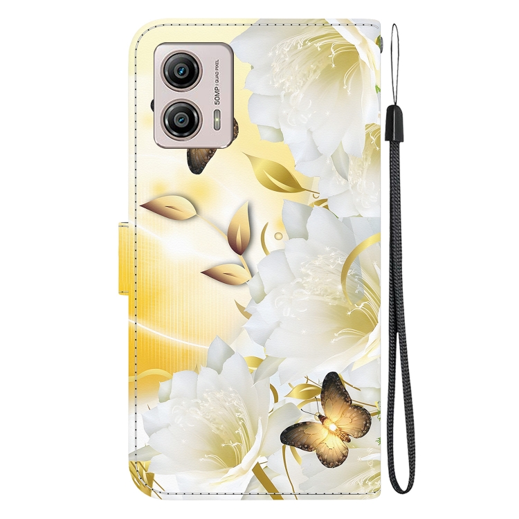 Estuche de Cuero para Motorola Moto G13 / G23 / G53 con Dibujo Epiphyllum y Textura de Cristal (Dorada)