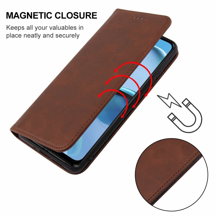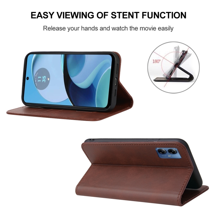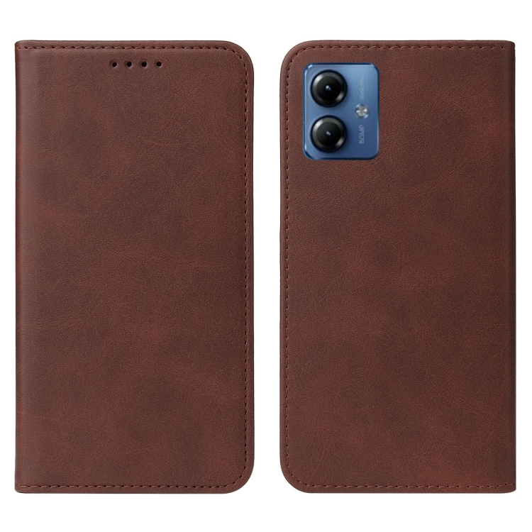 Funda de Cuero para Motorola Moto G14 con Cierre Magnético (Marrón)