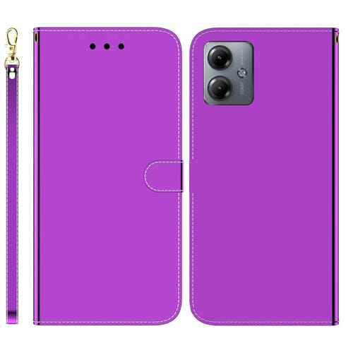 Funda de Cuero para Motorola Moto G14 con Superficie de Espejo Imitada (Púrpura)