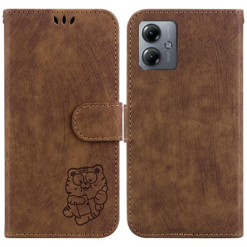 Funda de Cuero en Relieve para Motorola Moto G14 Little Tiger para Teléfono (Marrón)