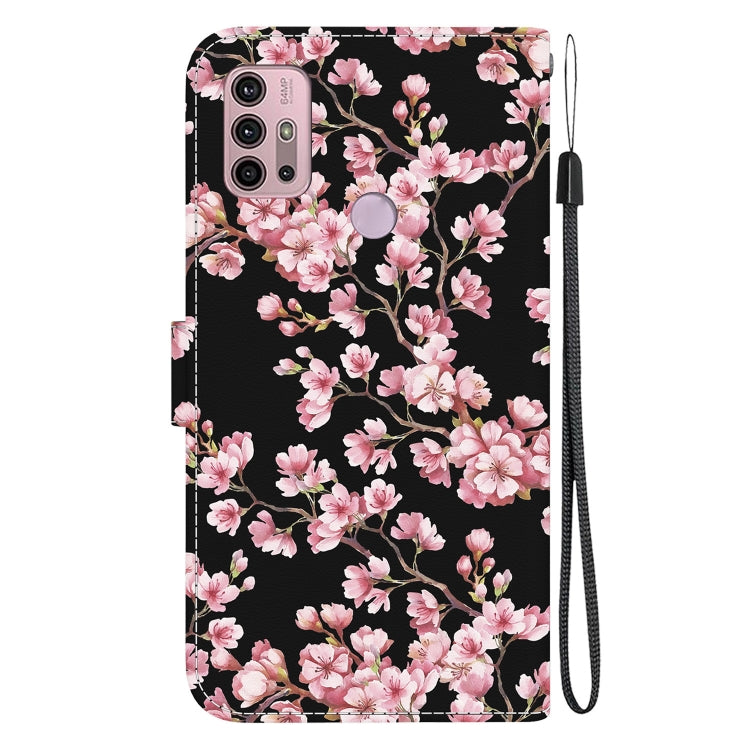 Funda de Cuero para Motorola Moto G30 G10 G20 con Dibujo Coloreado y Textura de Cristal (Flor de Ciruelo)