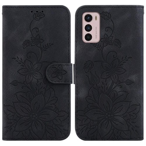 - 1x Funda de Teléfono Motorola Moto G42 Lily Cuero en Relieve (Negro)