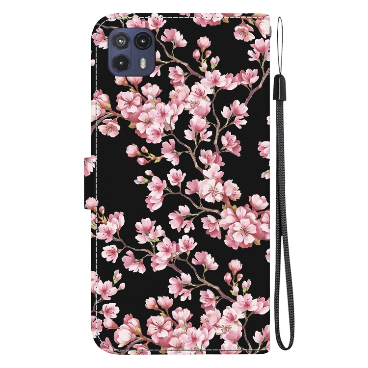 Funda de Cuero para Motorola Moto G50 5G con Dibujo Coloreado y Textura de Cristal (Flor de Ciruelo)