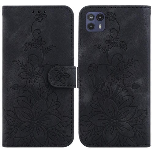 Funda de Cuero en Relieve para Motorola Moto G50 5G Lily (Negro)
