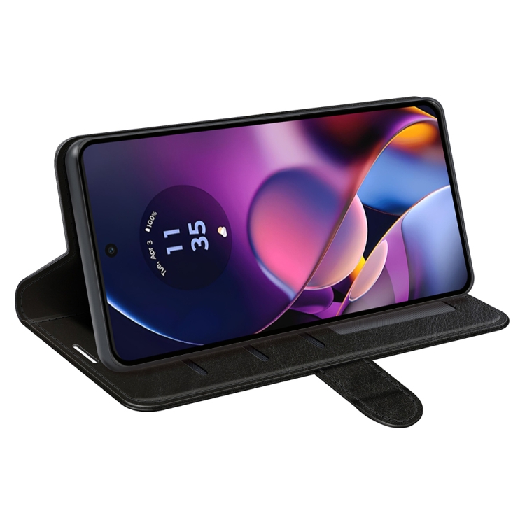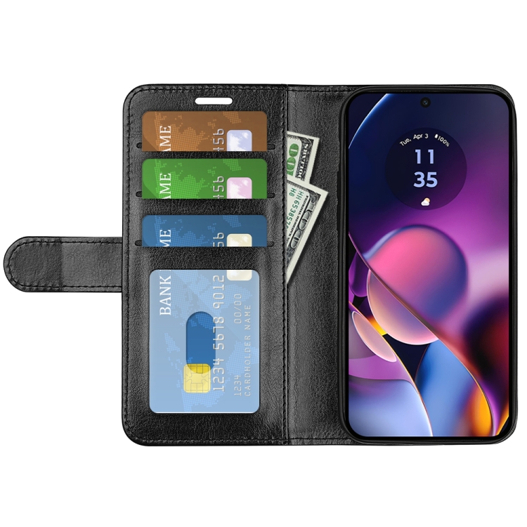 Funda de Cuero para Motorola Moto G54 R64 con Tapa Horizontal y Textura (Negro)