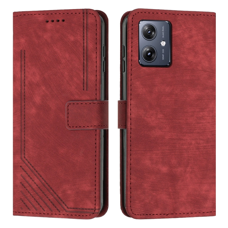 Funda de Cuero para Motorola Moto G54 Skin Feel con Patrón de Rayas y Cordón (Rojo)
