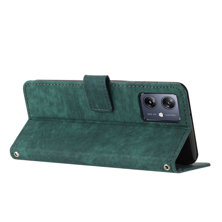 Funda de Cuero Skin Feel para Motorola Moto G54 con Patrón de Rayas y Cordón (Verde)