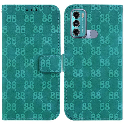 Estuche para Motorola Moto G60 y G40 Fusion de Cuero en Relieve con Doble Forma de 8 (Verde)