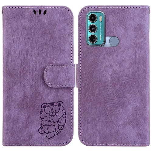 Funda de Cuero para Motorola Moto G60 / G40 Fusion Little Tiger en Relieve (Púrpura)