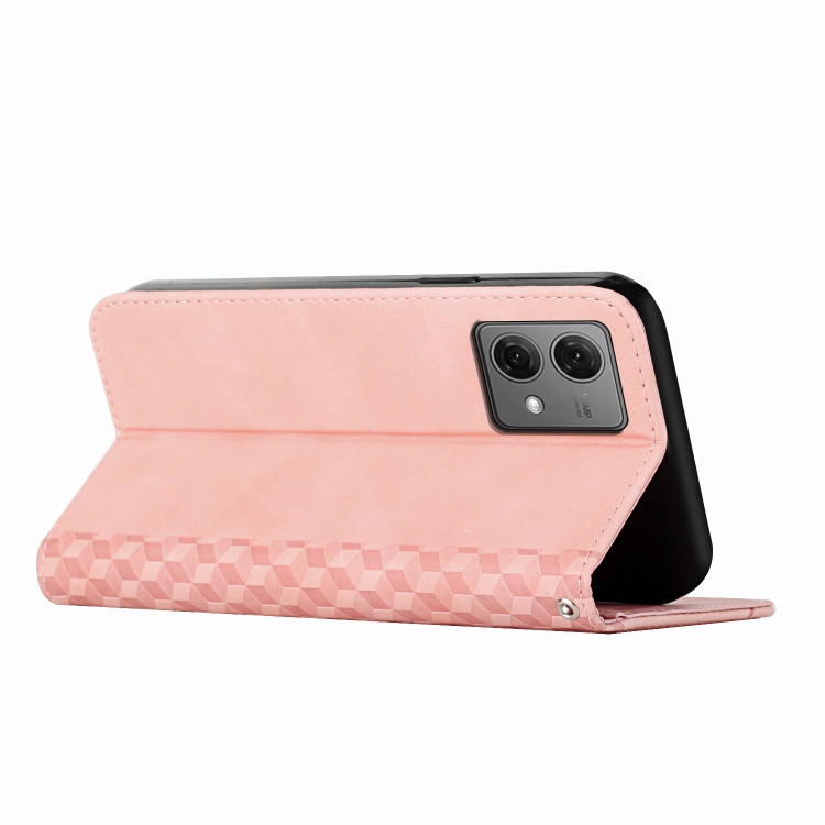 Funda de Cuero Magnética para Motorola Moto G84 Diamond Splicing Skin Feel (Oro Rosa)