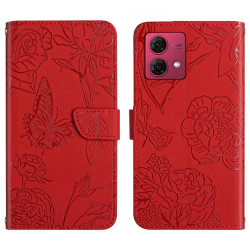 Funda de Cuero para Motorola Moto G84 Ht03 Skin Feel Butterfly con Tapa en Relieve (Rojo)