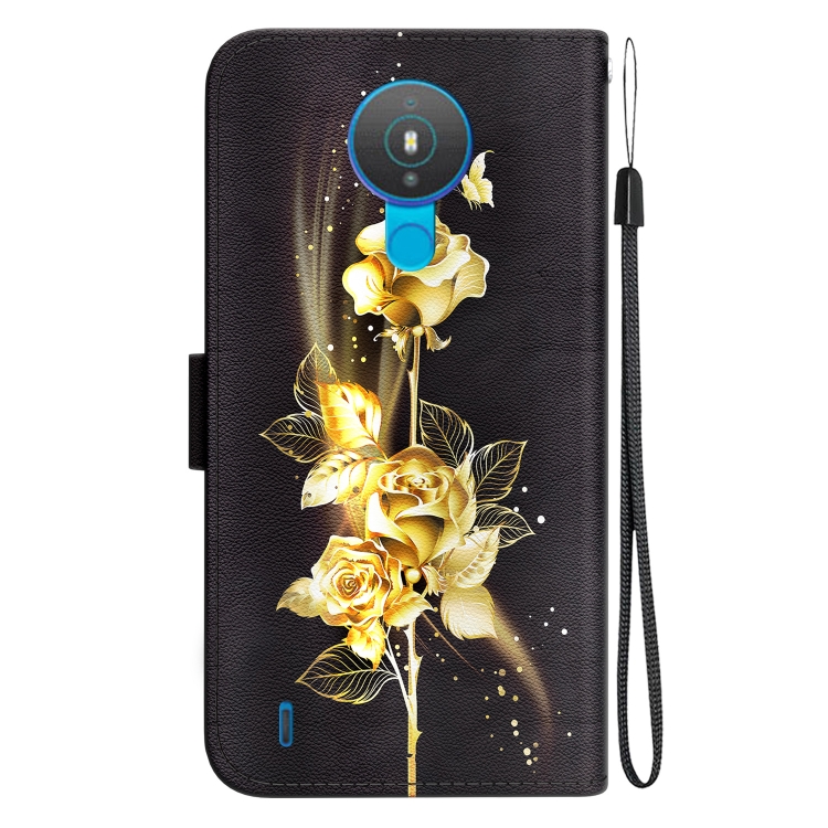 Funda de Cuero para Nokia 1.4 con Dibujo Coloreado y Textura de Cristal (Mariposa Dorada Rosa)