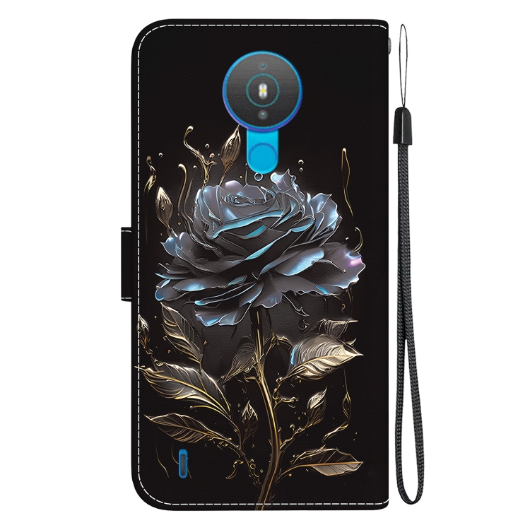 Funda de Cuero para Nokia 1.4 con Dibujo Coloreado y Textura de Cristal (Rosa Negra)