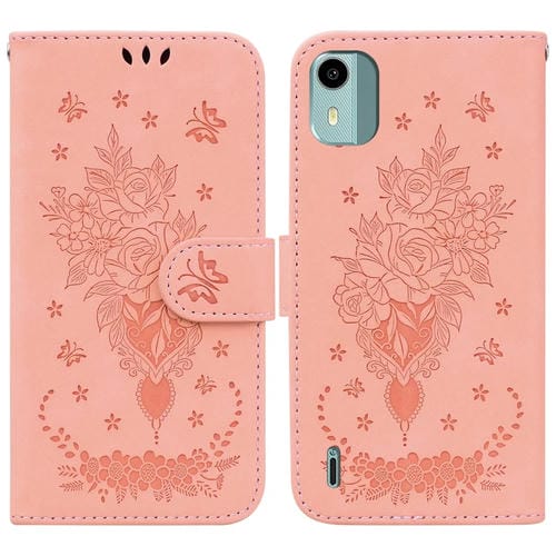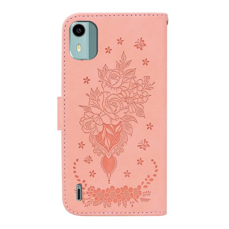 Funda para Nokia C12 Butterfly Rose Caja de Teléfono de Cuero en Relieve (Rosa)