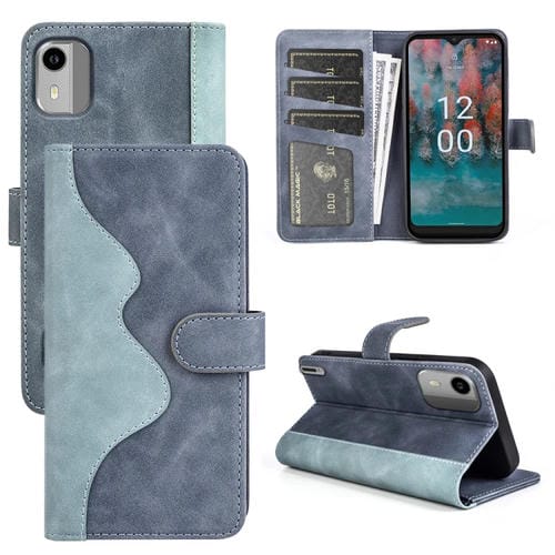Funda de Cuero para Nokia C12 con Costura Horizontal y Flip (Azul)