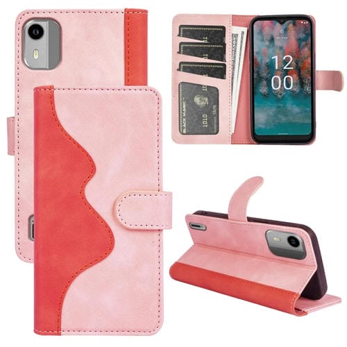 Funda de Cuero para Nokia C12 Costura Horizontal Flip (Rojo)