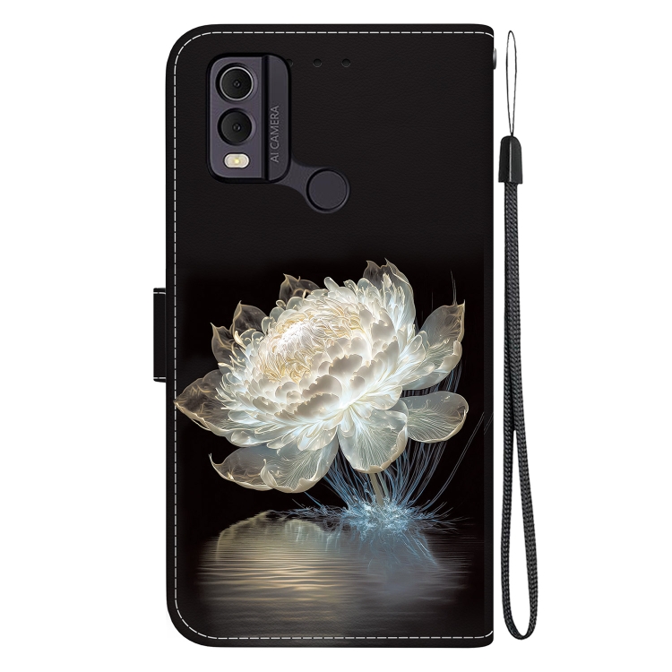 Funda de Cuero para Nokia C22 con Dibujo Coloreado y Textura de Cristal (Peonía de Cristal)