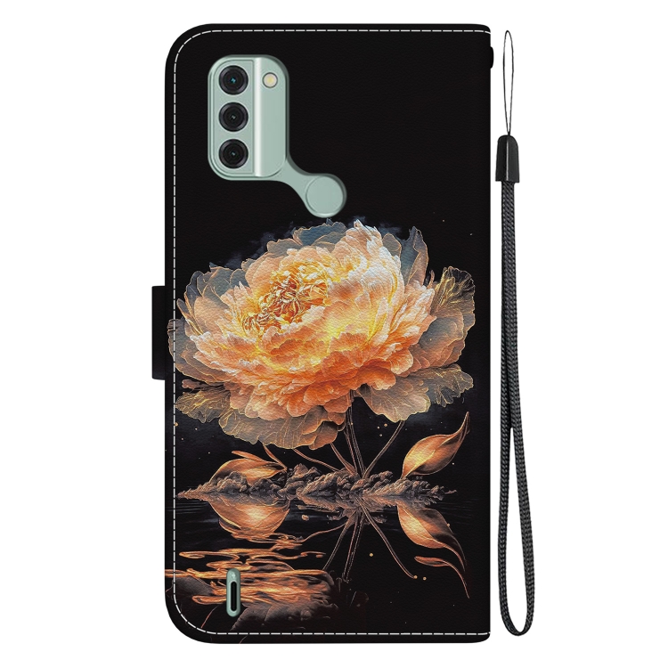 Funda para Nokia C31 de Cuero con Dibujo Coloreado y Textura de Cristal (Peonía Dorada)