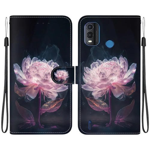 Funda para Nokia G11 Plus de Cuero con Dibujo Coloreado y Textura de Cristal (Peonía Púrpura)