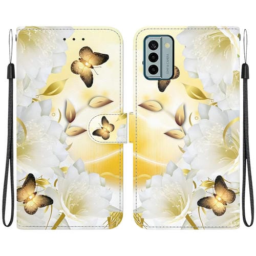 Funda de Cuero para Nokia G22 con Dibujo Coloreado y Textura de Cristal (Epiphyllum Mariposa Dorada)