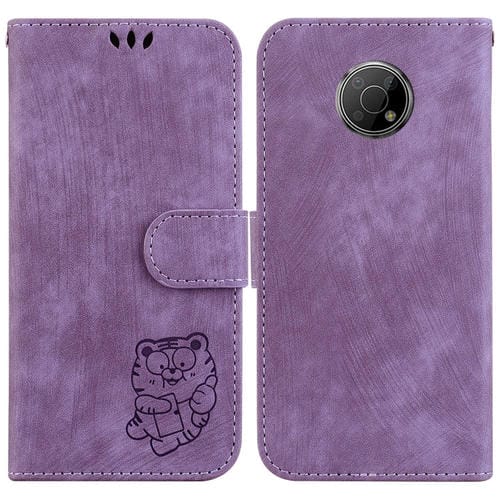 Funda para Teléfono Nokia G300 de Cuero con Relieve Little Tiger (Púrpura)