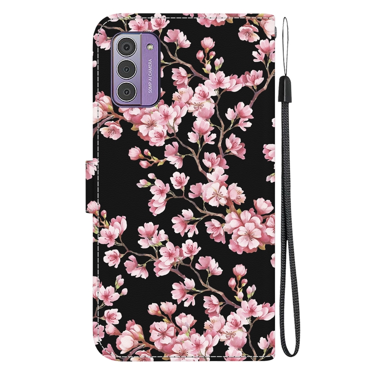 Funda de Cuero para Nokia G42 con Dibujo Coloreado y Textura de Cristal (Flor de Ciruelo)