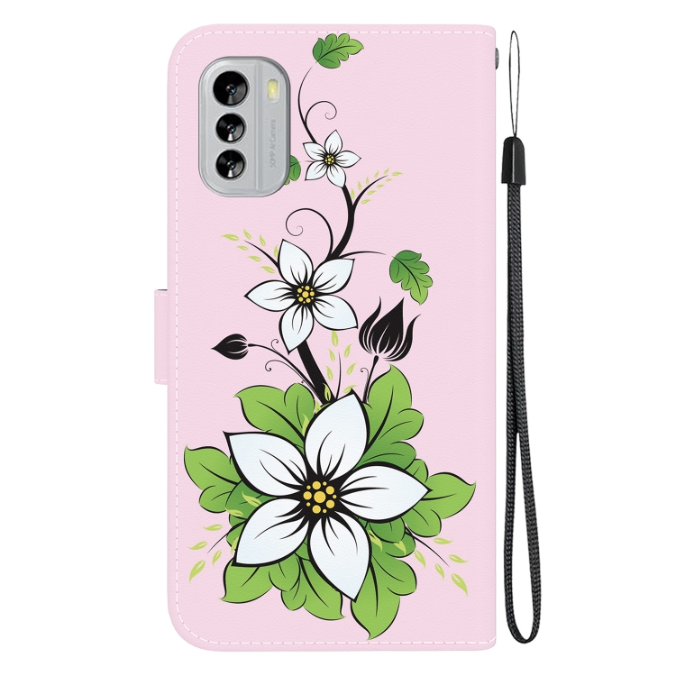 Funda de Cuero para Nokia G60 con Dibujo Coloreado y Textura de Cristal (Lily)
