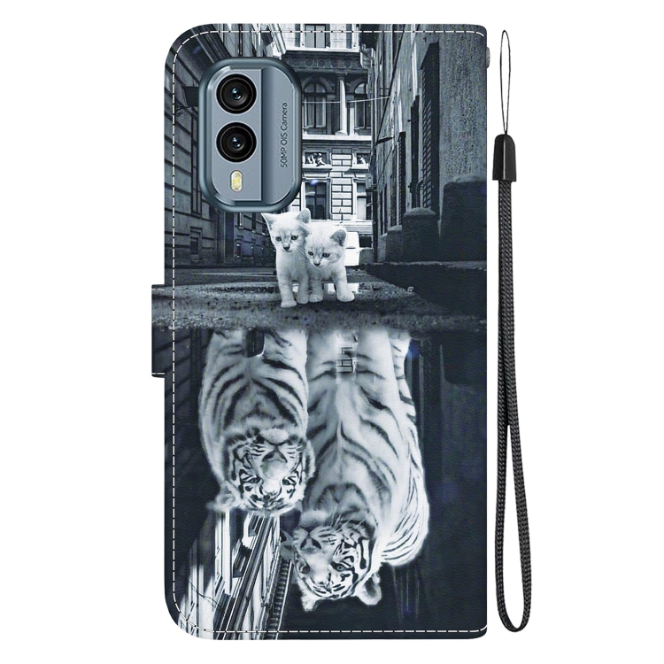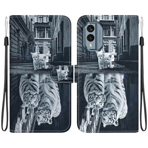 Funda de Cuero para Nokia X30 con Dibujo Coloreado y Textura de Cristal (Reflejo de Tigre Gato)