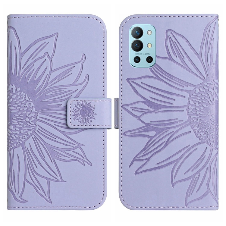 - 1x Funda de Cuero Flip para OnePlus 10 Pro Skin Feel con Cordón y Patrón Girasol (Púrpura)