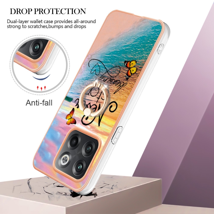 - 1x Funda TPU con Anillo para OnePlus 10T 5G Ace Pro Galvanoplastia Imd (Dream Butterfly)