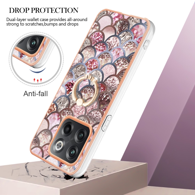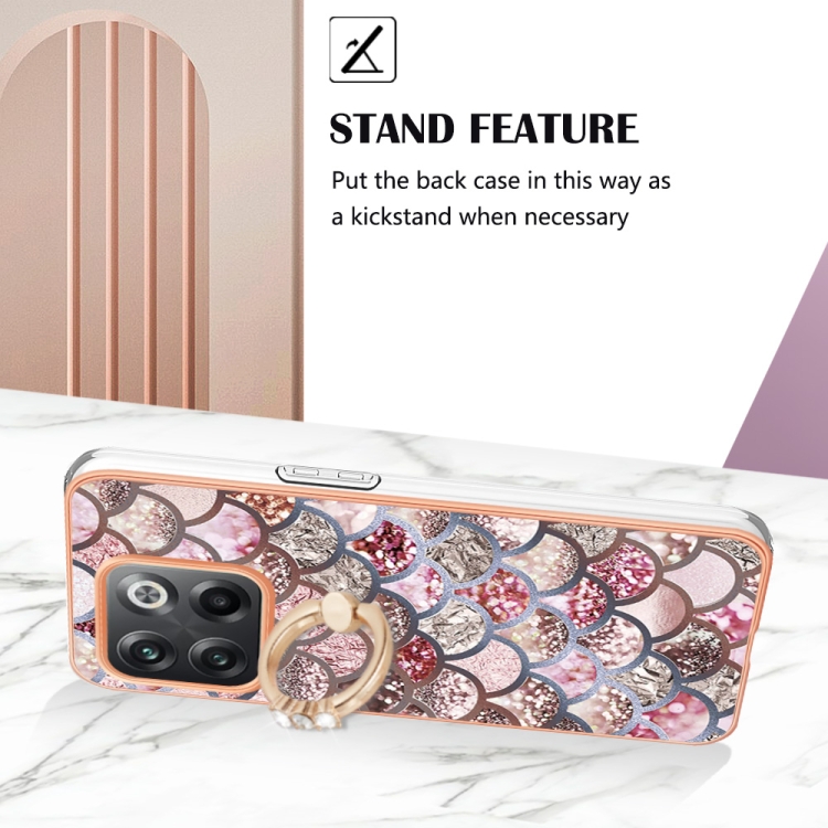 - 1x Funda para OnePlus 10T 5G Ace Pro Galvanoplastia IMD TPU con anillo (Escamas Rosas)