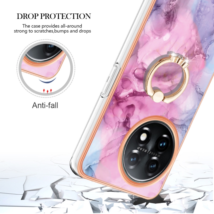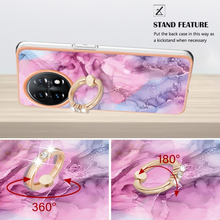 - 1x Funda para OnePlus 11 IMD Doble Cara Mármol Galvanoplastia con Anillo (Rosa)