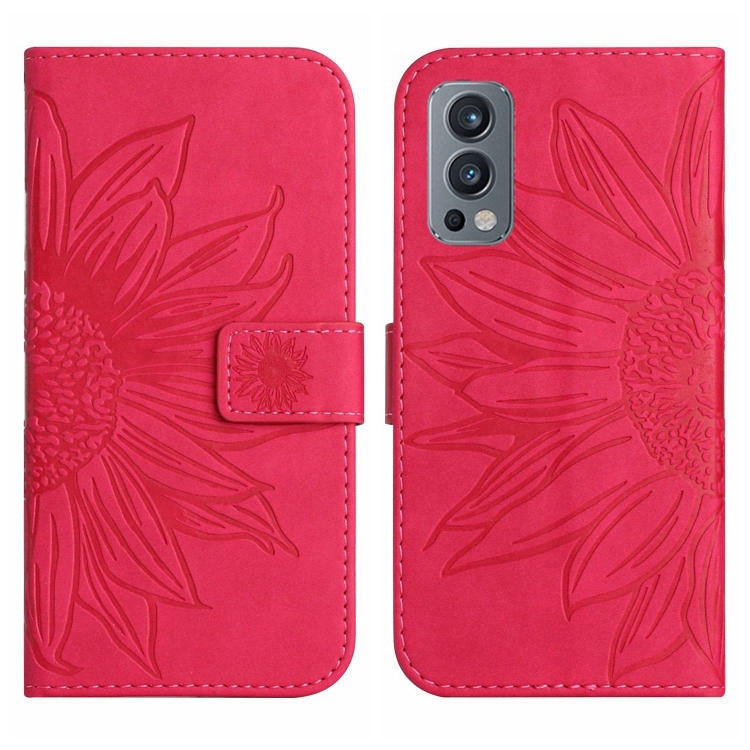 - 1x Funda de Cuero Flip con Cordón para OnePlus Nord 2T Skin Feel Sun Flower (Rose Red)