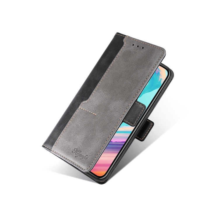 - 1x Funda de Cuero para OnePlus Nord CE 2 Lite 5G con Hebilla Lateral y Contraste (Negro + Gris)