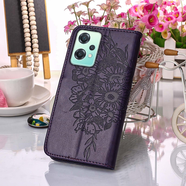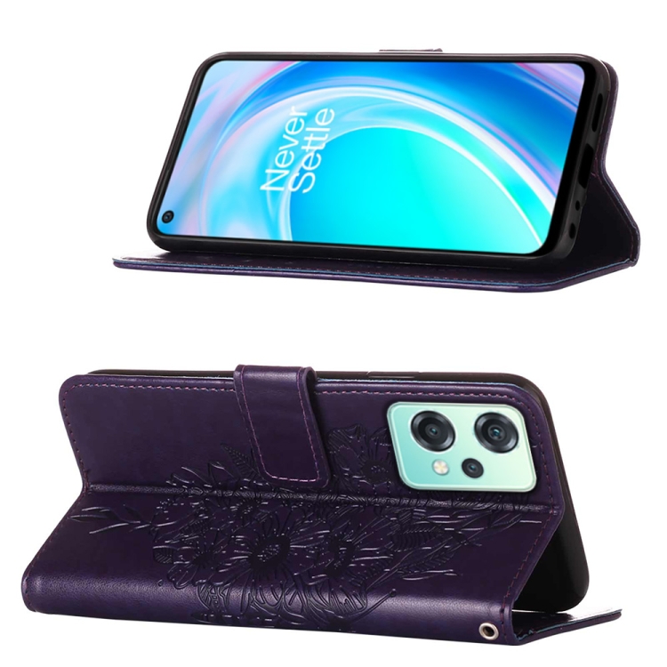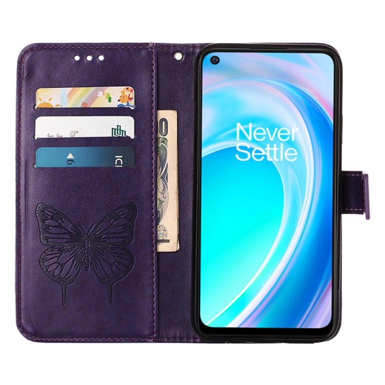 - 1x Funda de Cuero para OnePlus Nord CE 2 Lite 5G con Mariposa en Relieve (Morado Oscuro)