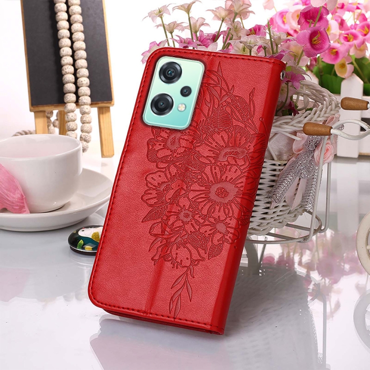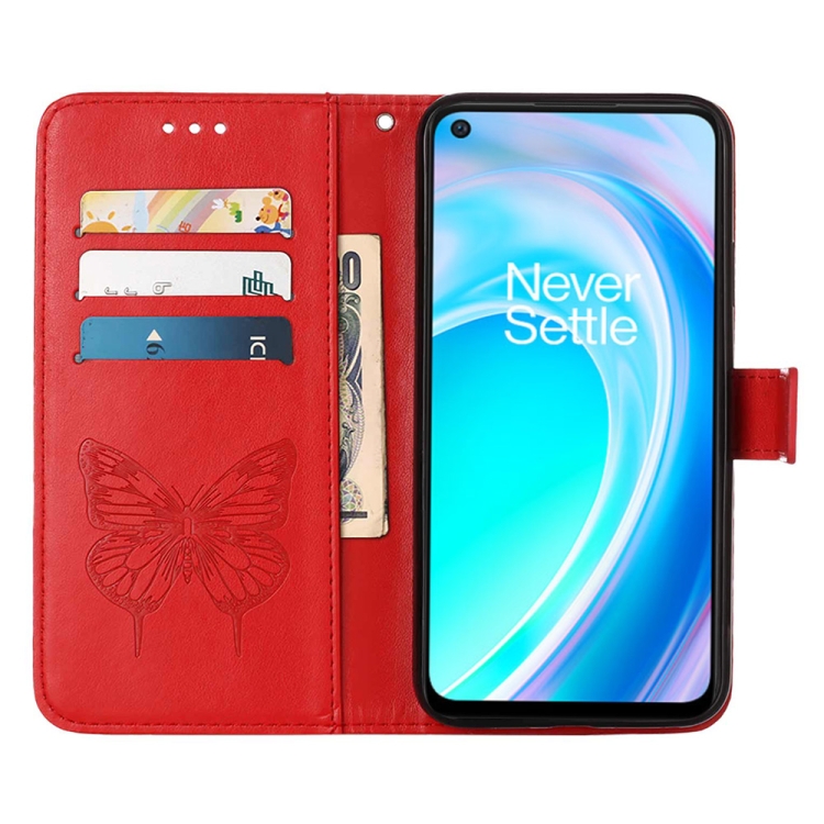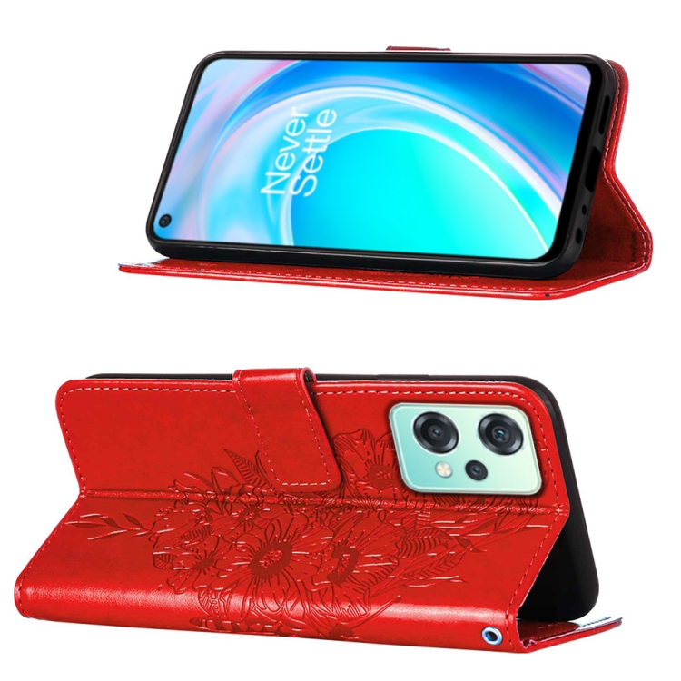 - 1x Funda de Cuero para OnePlus Nord CE 2 Lite 5G con Mariposa en Relieve (Rojo)