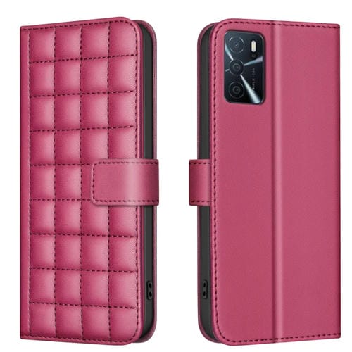 Para Oppo A16 / A16S / A54S / A55 / A54 Funda de Cuero con Textura Cuadrada (Rojo)