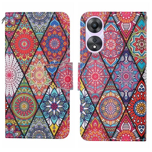 Para Oppo A58 4G Funda de Cuero para Teléfono con Patrón de Dibujo Coloreado (Tótem de Diamante)