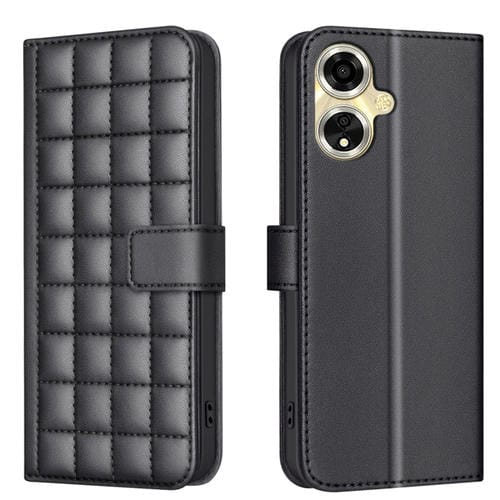 Para Oppo A59 5G Funda de Cuero con Textura Cuadrada (Negro)