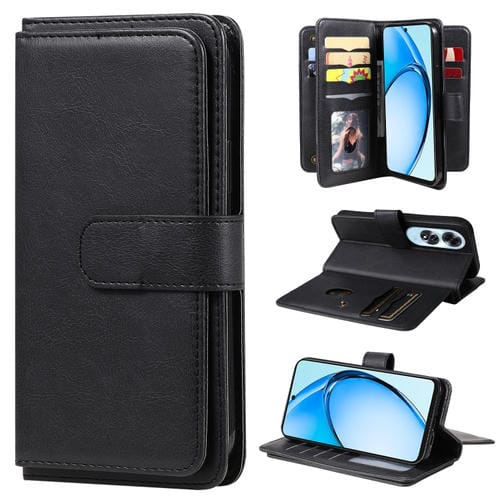 Para Oppo A60 4G Cartera Multifunción con 10 Ranuras para Tarjetas Funda de Cuero para Teléfono (Negro)