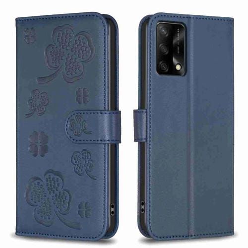 Para Oppo A74 4G / F19 4G Funda para Teléfono de Cuero con Relieve de Cuatro Hojas (Azul)